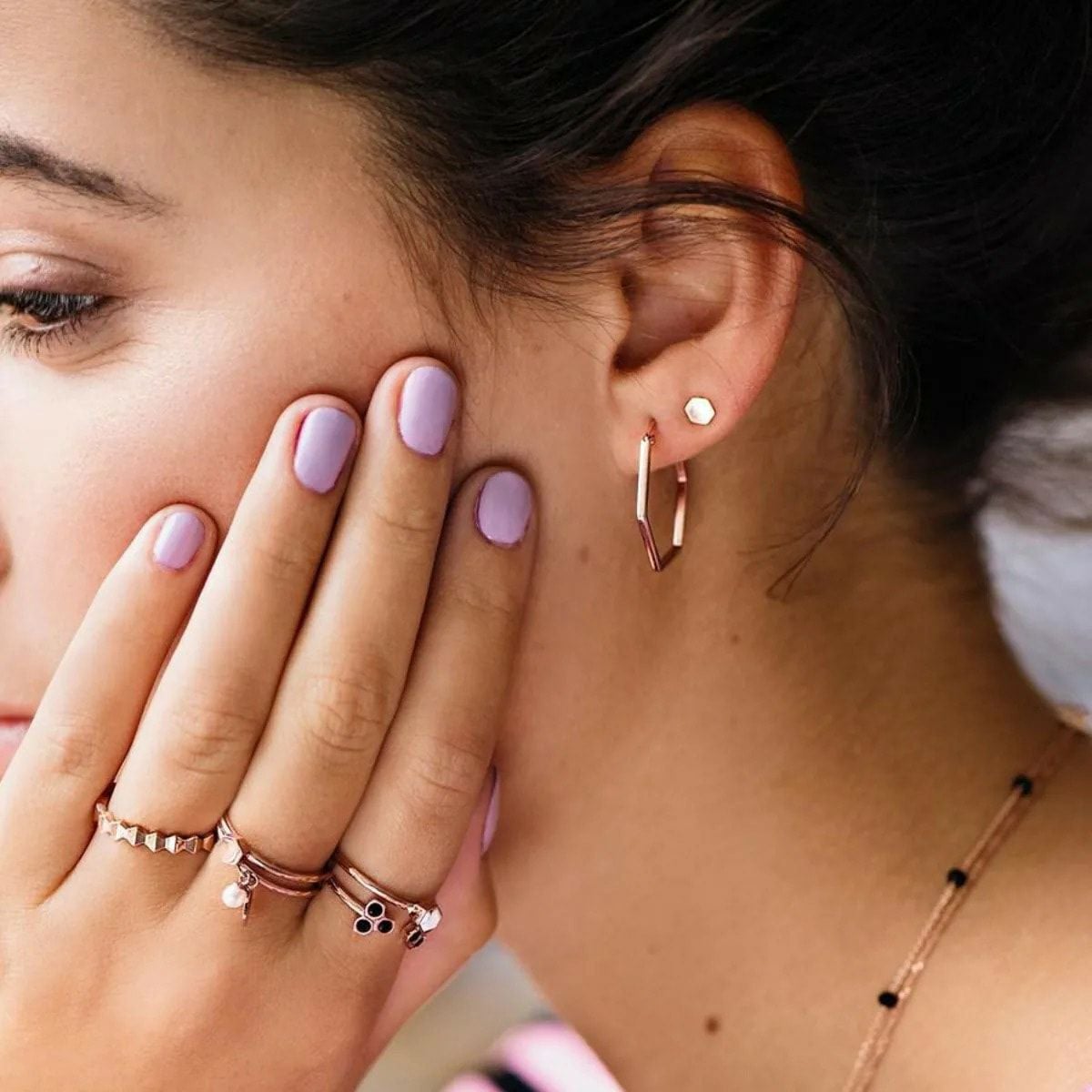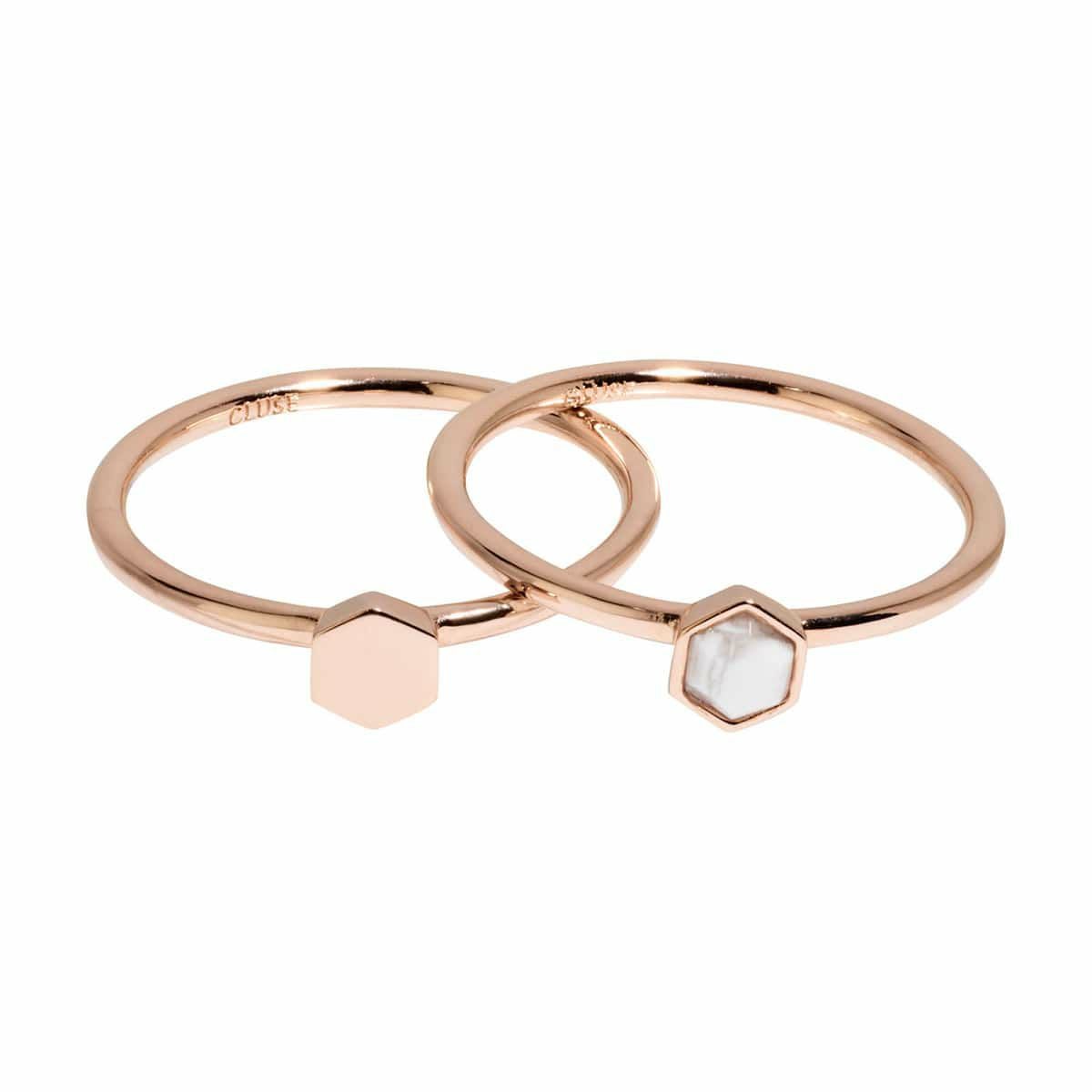 イディール ローズゴールド ソリッド アンド マーブル ヘキサゴン リング セット サイズ52