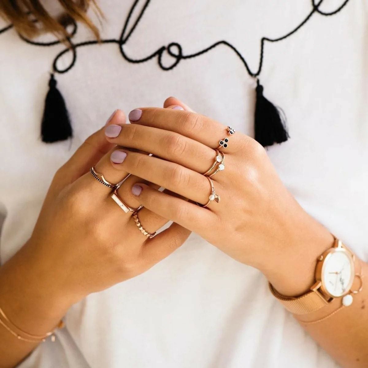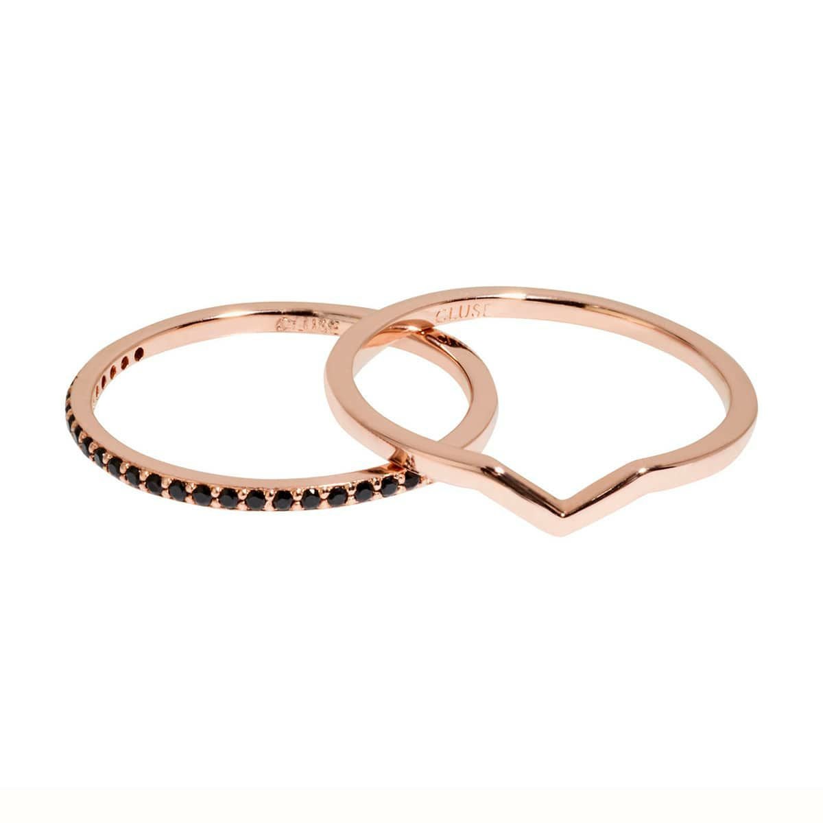 エッセンシエル ローズゴールド シェブロン ブラック アンド クリスタル リング セット サイズ54