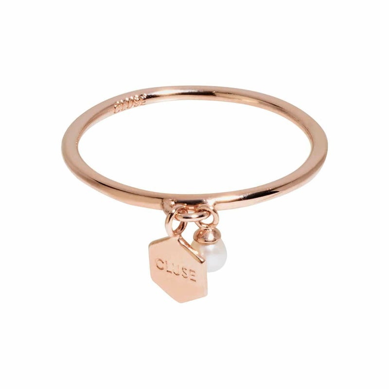 クラシックを現代風にアレンジしたこのエレガントな18 ctローズゴールドメッキスターリングシルバーリングは、エッジの効いた六角形のペンダントと美しい淡水パールの魅力を組み合わせています。こちらはサイズ52