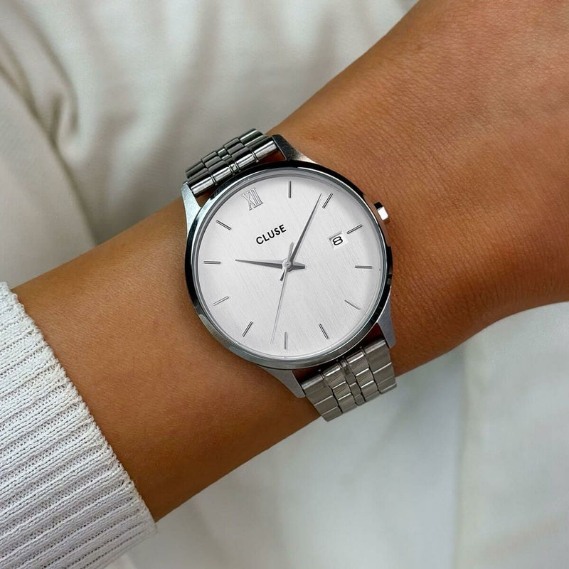 ミニュイ デイトウィメンズウォッチで、日常のワードローブにスタイルと洗練を加えましょう。34mmのラウンドシルバーカラーケース、5リンクストラップ、そして3時位置のデイト機能が特徴です。シルバーで統一されたこの時計は、究極のタイムキーピングアクセサリーです。