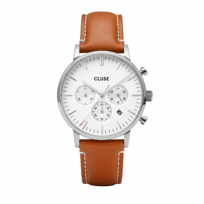 アラヴィスクロノ レザー シルバー ホワイト / ライトブラウン