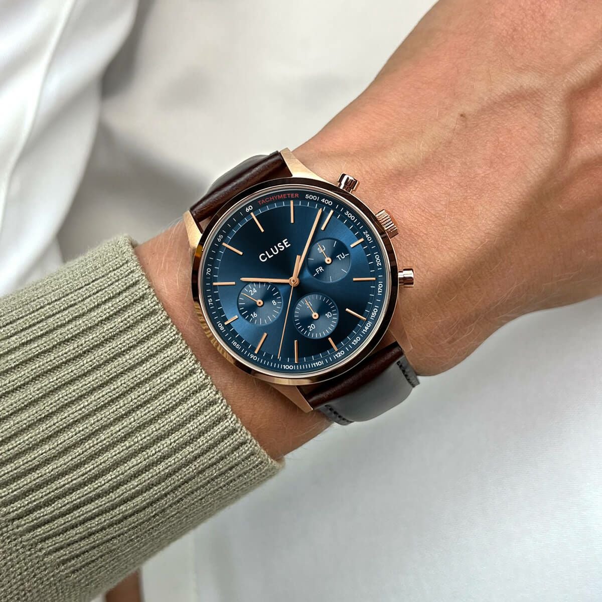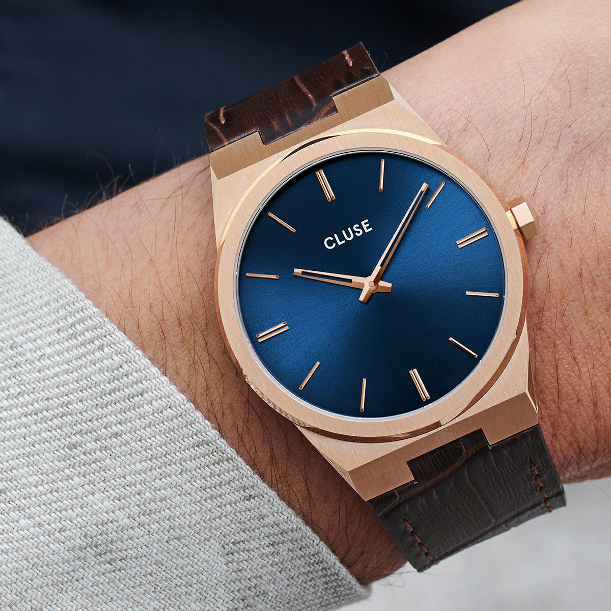 ヴィグルー40 レザー ローズゴールド ダークブルー / ダークブラウンクロコ