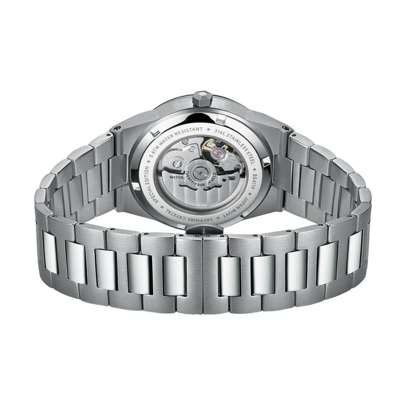 スペシャルエディションの自動巻き腕時計。この洗練された男性向けの時計は、24mmのシルバーステンレススチールストラップが一体化され、ブラッシュ仕上げとポリッシュ仕上げが施されたシルバー40mmラウンドケース、サファイアクリスタル、そして41時間のパワーリザーブを持つSEIKO(SII)NH70A自動巻きスケルトンムーブメントを搭載しています。卓越した品質と視覚的な魅力を持ち、会話のきっかけとしても最適なこの腕時計を、ぜひお手元でお楽しみください。