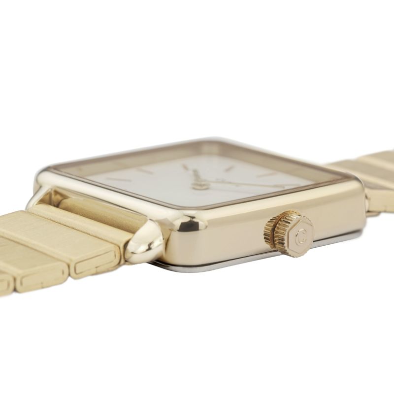 スクエアーベゼルのLa Tetragone(ラ・テトラゴン)コレクション。 程よいボリューム感のケースの角に丸みを持たせることでシャープになりすぎず、 より柔らかな印象になり、カジュアルにもフォーマルにもシーンを選ばず活躍してくれます。通常のリンクバンドより軽量化されているシングルリンクバンドを採用。コマ抜きではなくメッシュバンドと同じスライドでのサイズ調整が可能となっています。 この時計のベルトは16 mmの替えベルトと交換できます。