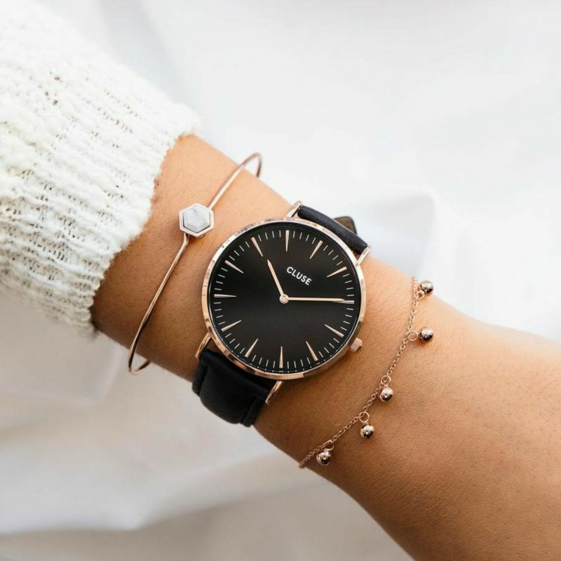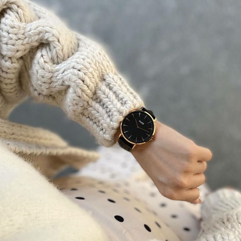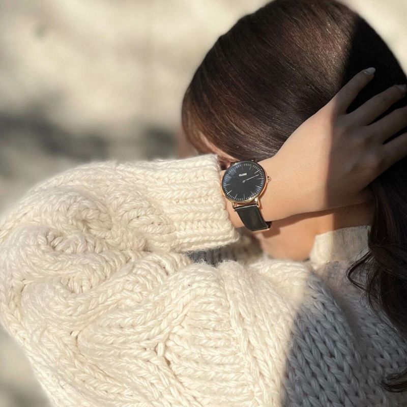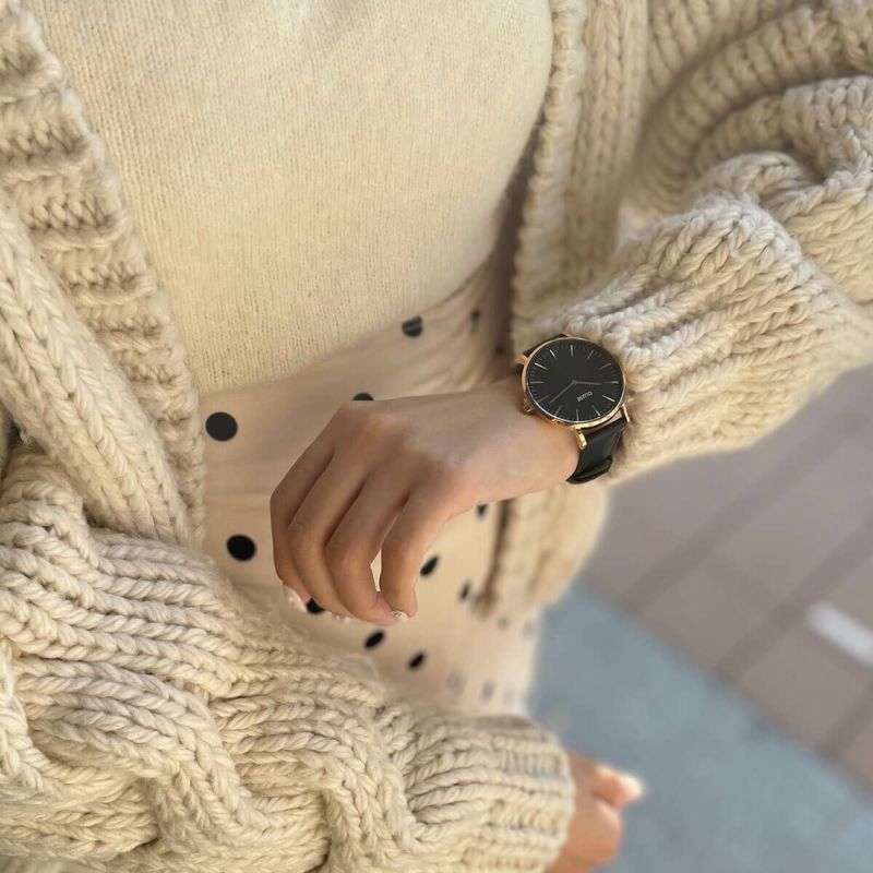 クルースで 最初にできたコレクション。ケースサイズが38mmと女性にしてはビッグフェイスのため、スタイリングのアクセントになってくれます。この時計のベルトは18mmの替えベルトと交換できます。