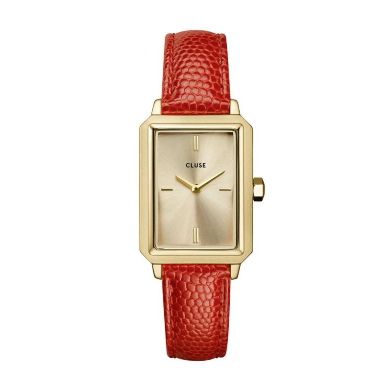 大胆に。エレガントである。洗練された。そんなあなたには、レザーコーラルトカゲとゴールドのフリューレットウォッチがぴったりです。ポリッシュ仕上げの30.6mmゴールド長方形ケース、シャンパン・サンレイ文字盤、コーラルカラーのレザー・リザード14mmストラップ。ユニークなレクタンギュラー・シェイプとミニマルなセンスが光るこのアイキャッチャーは、存在感のある洗練されたウォッチを提供するという重要な目標を念頭に置いて、慎重にデザインされました。ストラップのサイズはご自身で簡単に調整できます。今こそ、このステートメントピースを身につける時です。