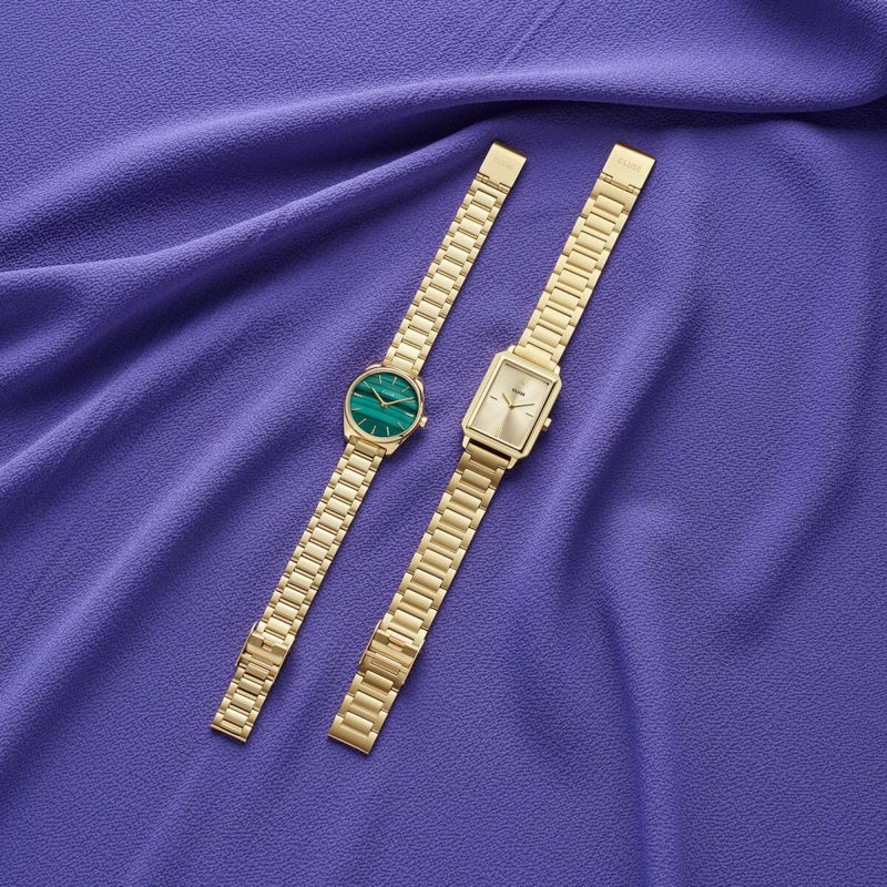 CLUSEのFluetteは、一年中輝きを放つ女性用ウォッチです。フルゴールドカラーのFluetteは、タイムレスなデザインで、輝きに満ちています。ゴールドカラーの30.6mm長方形ケース、シャンパンカラーのサンレイダイアル、ゴールドカラーの14mmステンレススチールリンクストラップが特徴的です。ユニークなレクタンギュラー・シェイプとミニマルなセンスが光るこのアイキャッチャーは、存在感のある洗練された時計を提供することを重要な目標として、慎重に設計されました。ストラップのサイズはご自身で簡単に調整することができます。