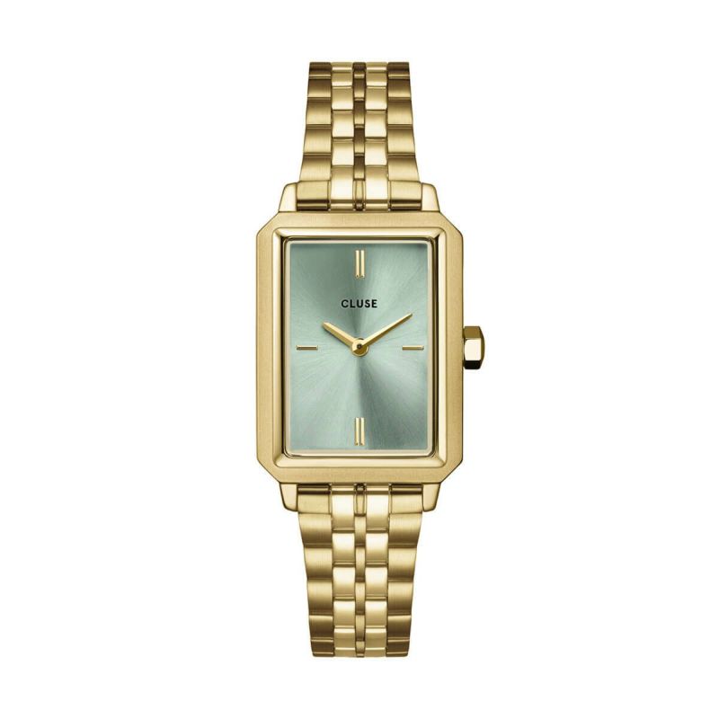 フリューレット ウィメンズウォッチで、あなたのルックに贅沢さと洗練を加えましょう。ポリッシュ仕上げの30.6mmゴールドカラー矩形ケース、14mmゴールドカラー5リンクストラップ、そしてセージグリーンダイヤルが特徴的なこの時計は、スタイルと洗練を体現しています。