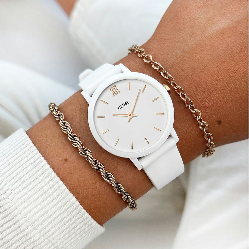 スポーティーとスタイリッシュの究極のコンビネーションをお探しですか?ミニュイナイロンは、ホワイトにゴールドのディテールを施した、スポーティでスタイリッシュなレディースウォッチです。ナイロン製のケースとシリコン製のストラップは、快適な着け心地です。この軽量な時計は一日中着用でき、アクティブな日のお供にぴったりです。33mmのラウンドケースは、手首のサイズに関係なく、あなたの完璧なパートナーになります。すべてのミニュイウォッチと同様に、ストラップは16mmの替えベルトに簡単に交換することができます。注意:ストラップのみ防水です。時計ケースは3気圧防水です。