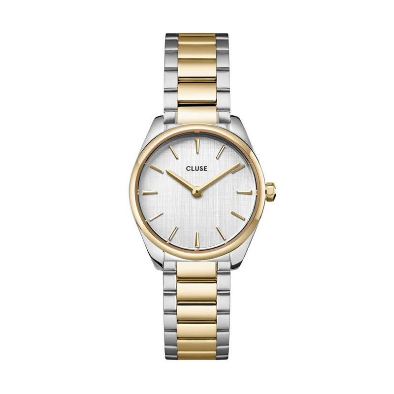 ミニマリズムと洗練された際立つディテールをシームレスに組み合わせています。バイカラーの25mmケース、銀色のリネン調の文字盤、ゴールドとシルバーの色合いの3リンク12mmストラップを特徴としています。これは、洗練されたミニマリストながら目を引く一品で、あなたのルックを完璧に仕上げるのに最適です。ストラップのサイズ調整も簡単に自分で行えます。