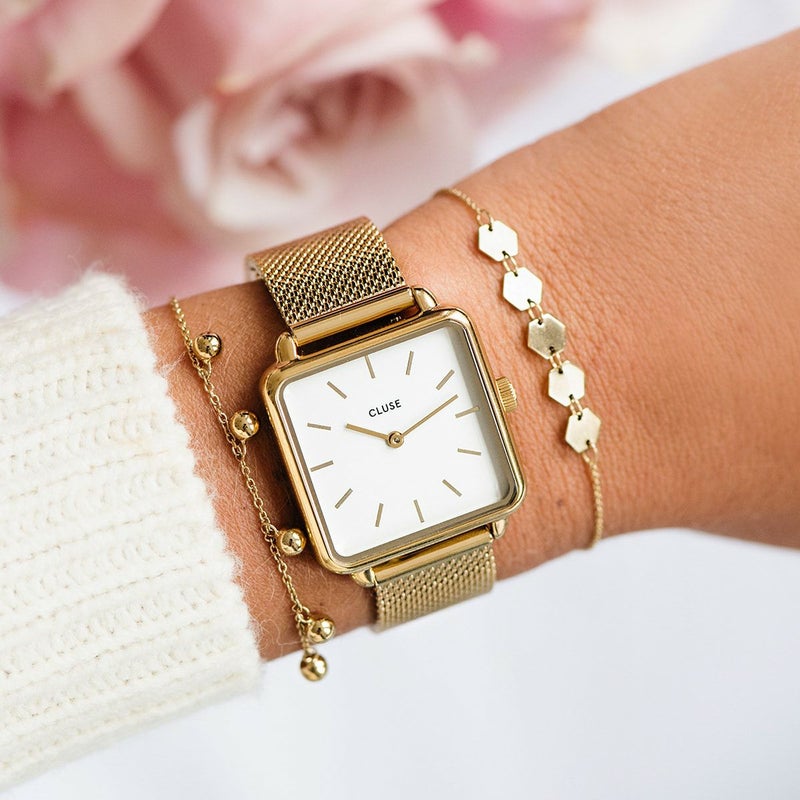 スクエアーベゼルのLa Tetragone(ラ・テトラゴン)コレクション。程よいボリューム感のケースの角に丸みを持たせることでシャープになりすぎず、より柔らかな印象になり、カジュアルにもフォーマルにもシーンを選ばず活躍してくれます。 メッシュベルトで合わせることで、より中性的でミニマムなスタイルにマッチします。この時計のベルトは16 mmの替えベルトと交換できます。
