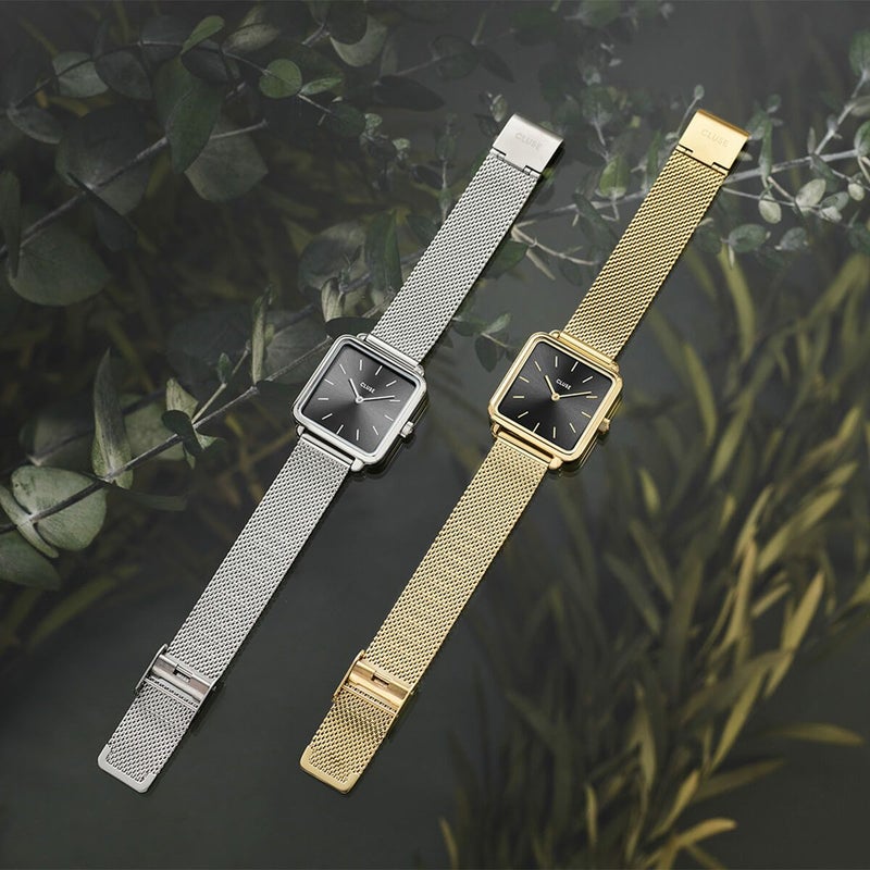 スクエアーベゼルのLa Tetragone(ラ・テトラゴン)コレクション。 程よいボリューム感のケースの角に丸みを持たせることでシャープになりすぎず、 より柔らかな印象になり、カジュアルにもフォーマルにもシーンを選ばず活躍してくれます。 メッシュベルトで合わせることで、より中性的でミニマムなスタイルにマッチします。 この時計のベルトは16 mmの替えベルトと交換できます。