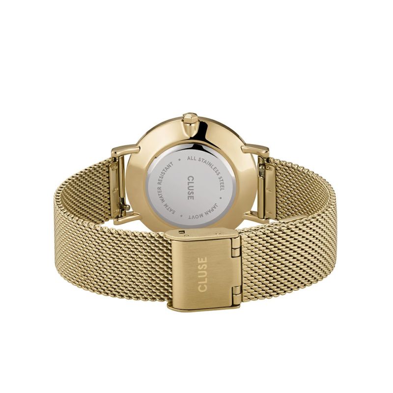 CLUSEで最もクラシックなモデルのミニュイコレクション。イエローゴールドにストーングリーンのブラッシュドに仕上げた文字盤を合わせることでイエローゴールドをよりカジュアルに楽しんでいただけるモデルになっています。