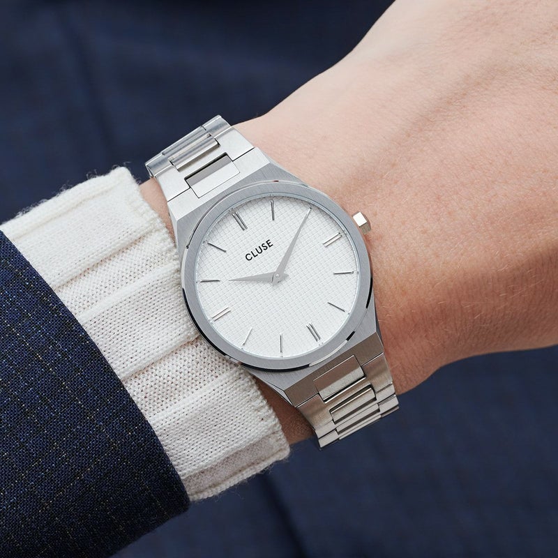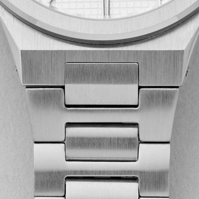 強く、大胆で、綺麗。洗練されたグリッドダイヤル。ブラッシュドステンレススチール。高度に洗練されたデザインは手首のコーディネートをワンランクアップした装いにしてくれます。