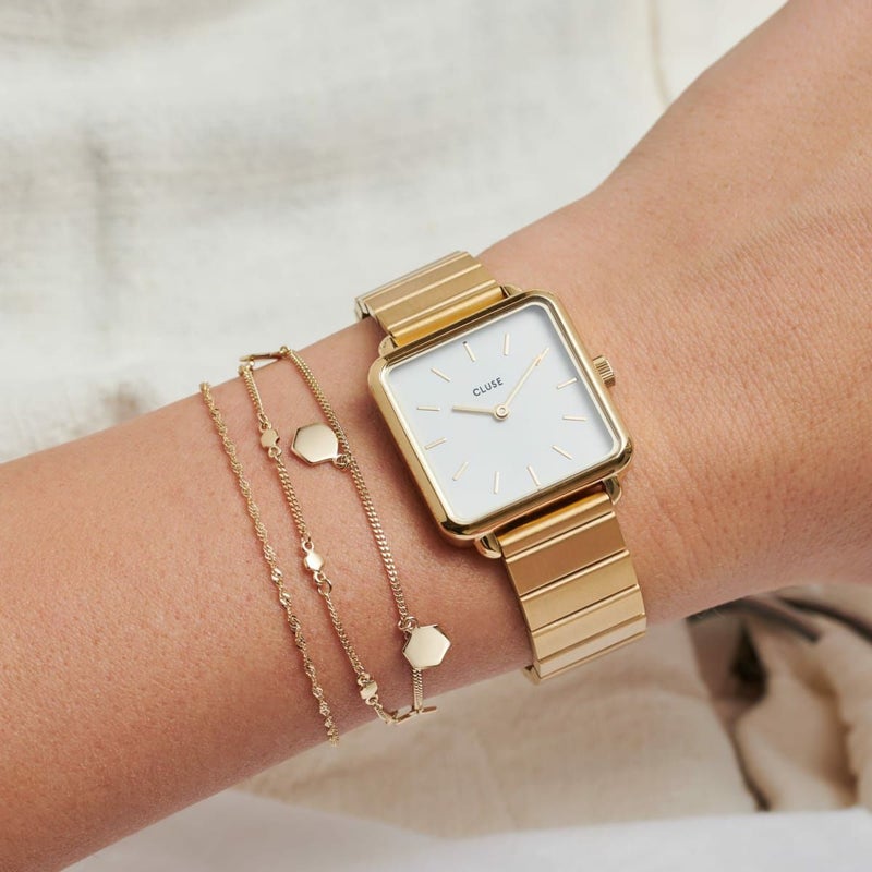 高品質のステンレススチールベルト(幅16 mm)。通常のリンクバンドより軽量化されているシングルリンクバンドを採用。コマ抜きではなくメッシュバンドと同じスライドでのサイズ調整が可能となっています。道具を使わず簡単に着脱できるクリックオン/オフシステムを搭載。