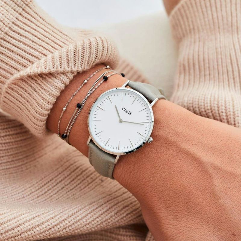 高品質のレザーベルト(幅18 mm)。道具を使わず簡単に着脱できるクリックオン/オフシステムを搭載。