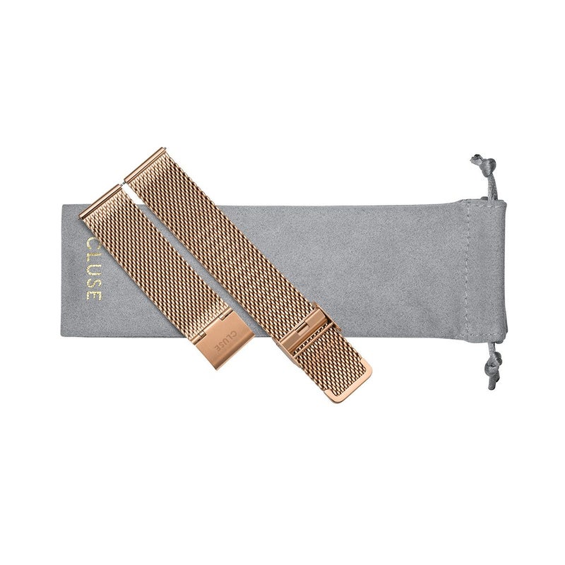 高品質のステンレススチールメッシュベルト(幅20 mm)。道具を使わず簡単に着脱できるクリックオン/オフシステムを搭載。