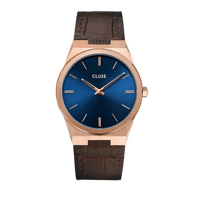 ヴィグルー40 レザー ローズゴールド ダークブルー / ダークブラウンクロコ